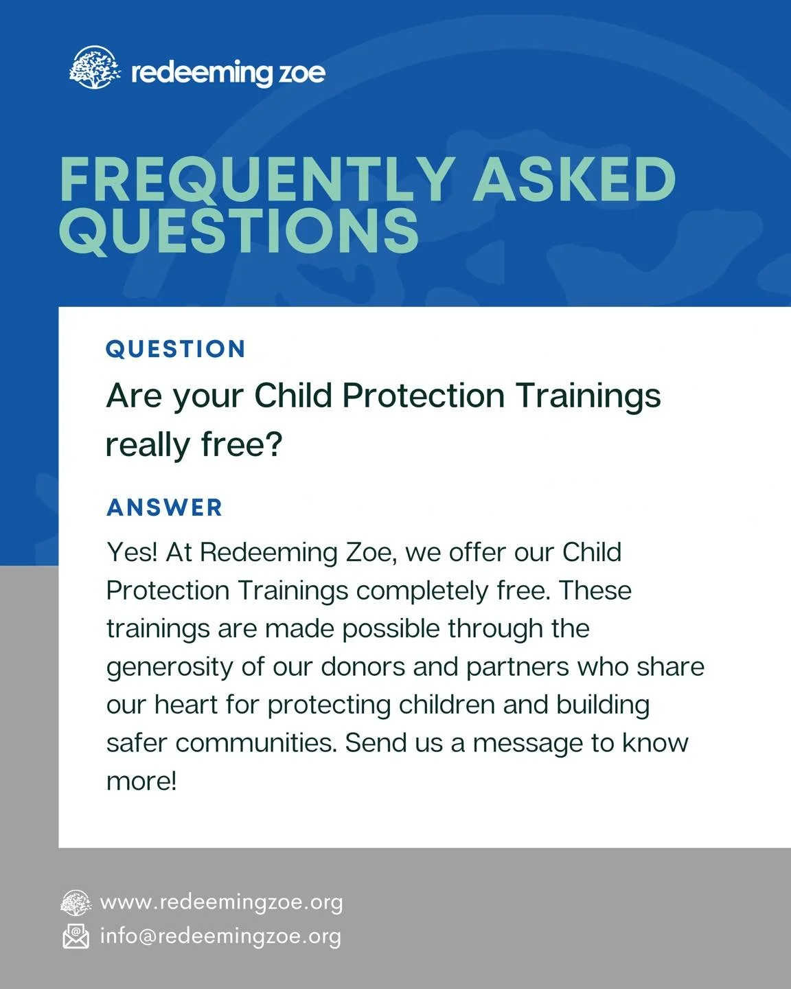 Founded in 2016, Redeeming Zoe is a nonprofit organization in the Philippines focused on preventing child abuse and exploitation. We equip children, families, and communities through education, awareness, and child protection programs. Our mission is to empower individuals to live the Zoe kind of life, a life that is complete, flourishing, and abundant, not just physically alive but truly thriving.
